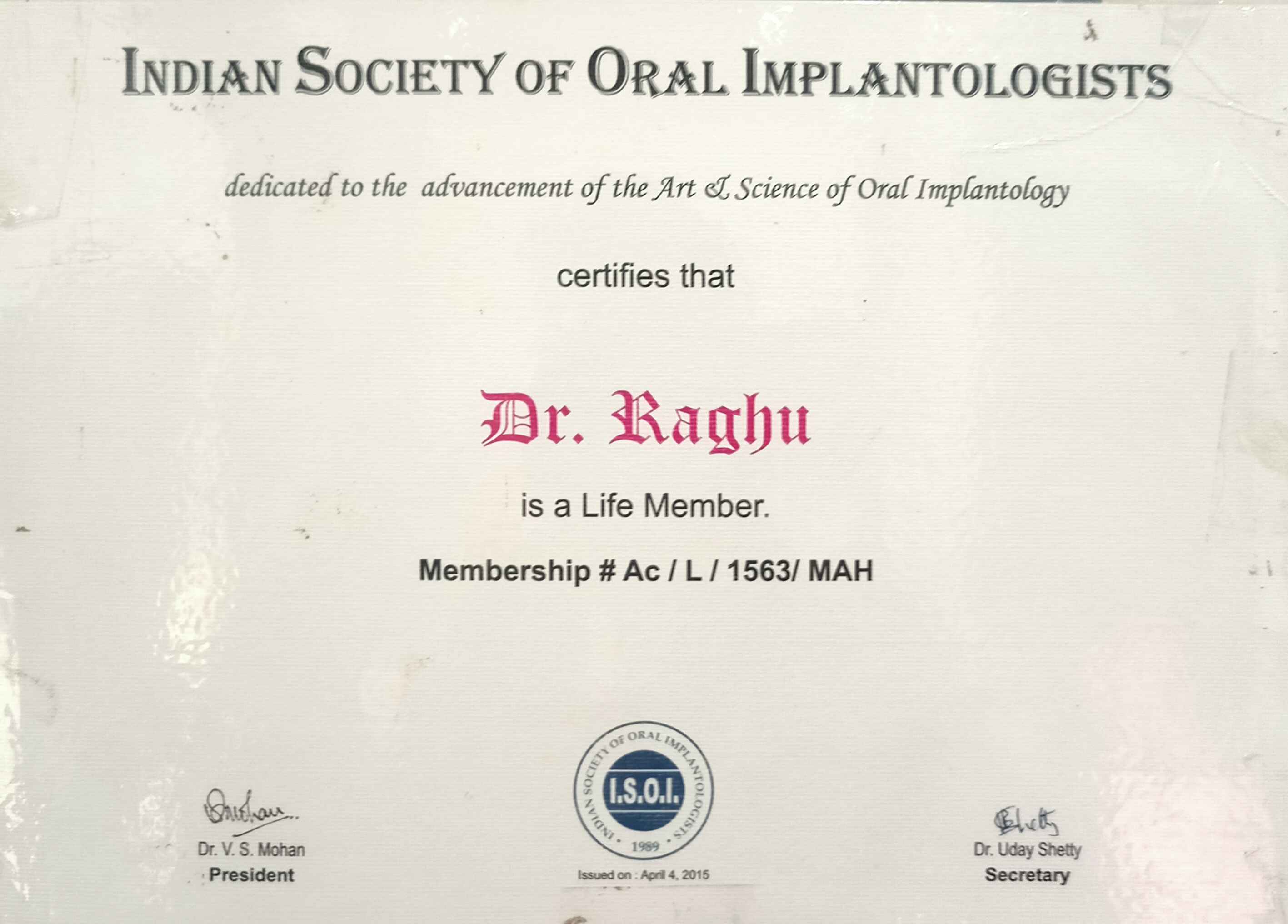 4. Life Member of ISOI [ Indian Society of Oral Implantology.